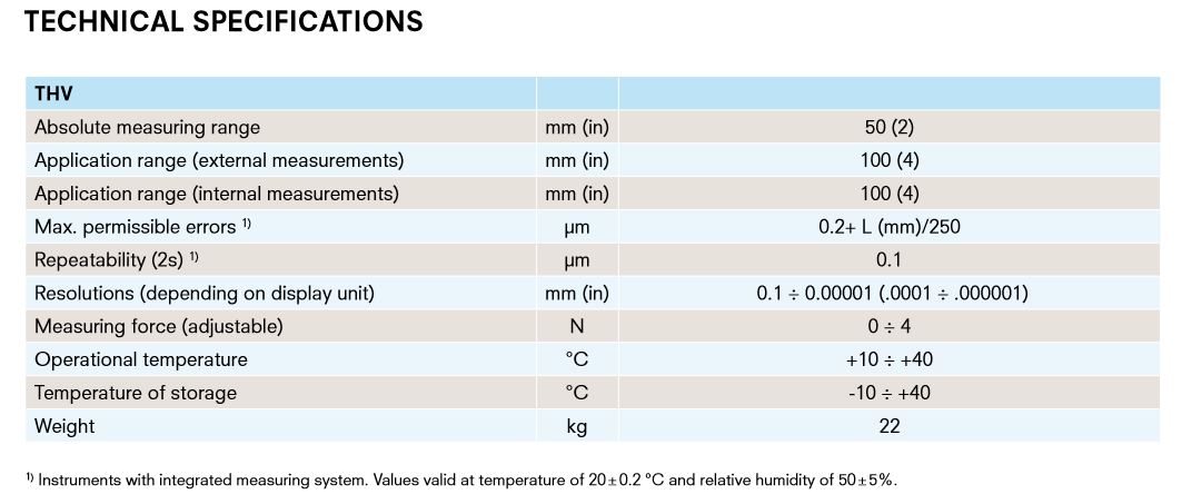 THV小型測長儀,配置Heidenhain光學尺和電子顯示器,可用於小規格的塞規和環規的檢查。THV標準配置為直徑 6.5mm 的鎢鋼外徑測頭和一套內徑測頭,最小直徑10mm。更小的直徑測頭可以選購。
