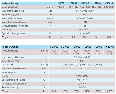 測量範圍從500mm到3000mm全系列臥式測長機。全量程絕對測量,無需調整或中間重新校正。